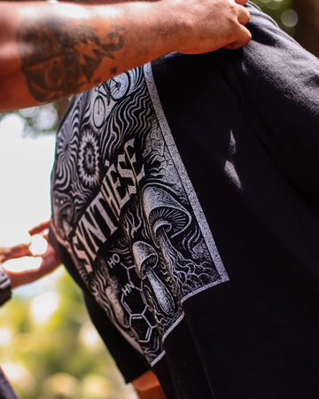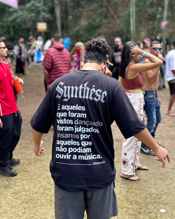 Cada peça é um fragmento de consciência. Cada estampa, um traço da alma. Cada corte, um grito silencioso que somente quem sente é capaz de compreender. A Synthée é feita para os que caminham entre mundos; para aqueles que transformam seus corpos em telas e suas vidas em arte; para quem veste não apenas o corpo, mas também uma forma de existir. Não somos moda. Somos mutação. Somos presença. Somos atravesso. Somos síntese.